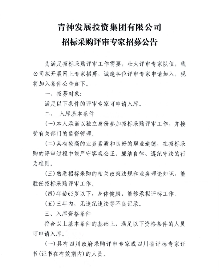 青神發(fā)展投資集團有限公司-招標采購評審專家招募公告